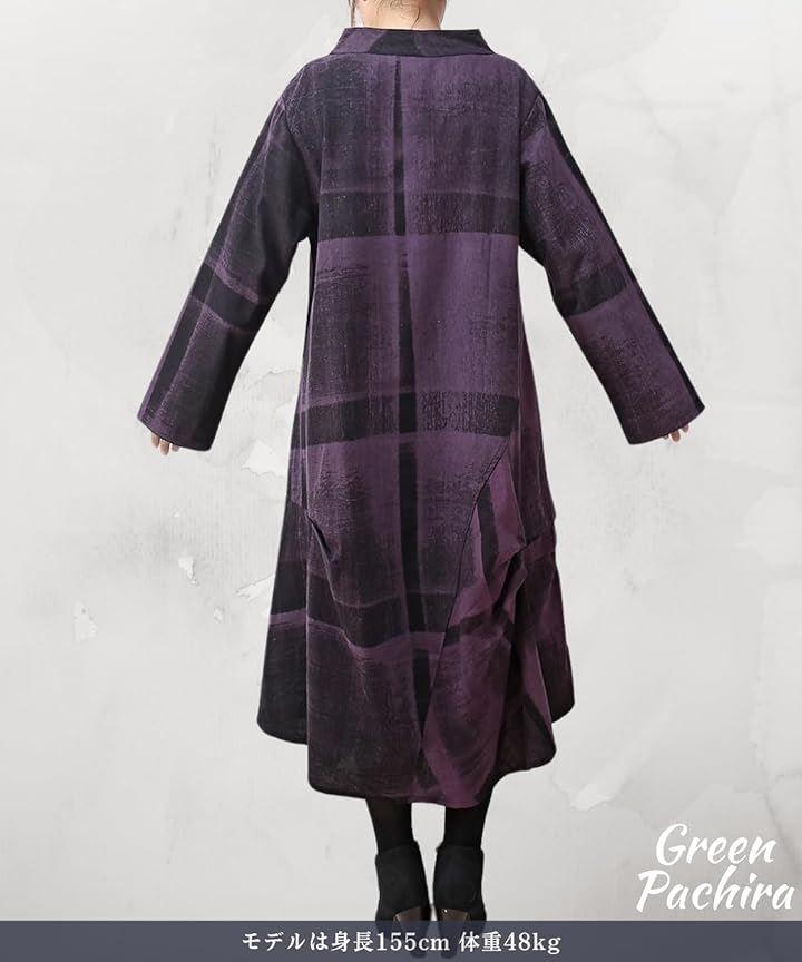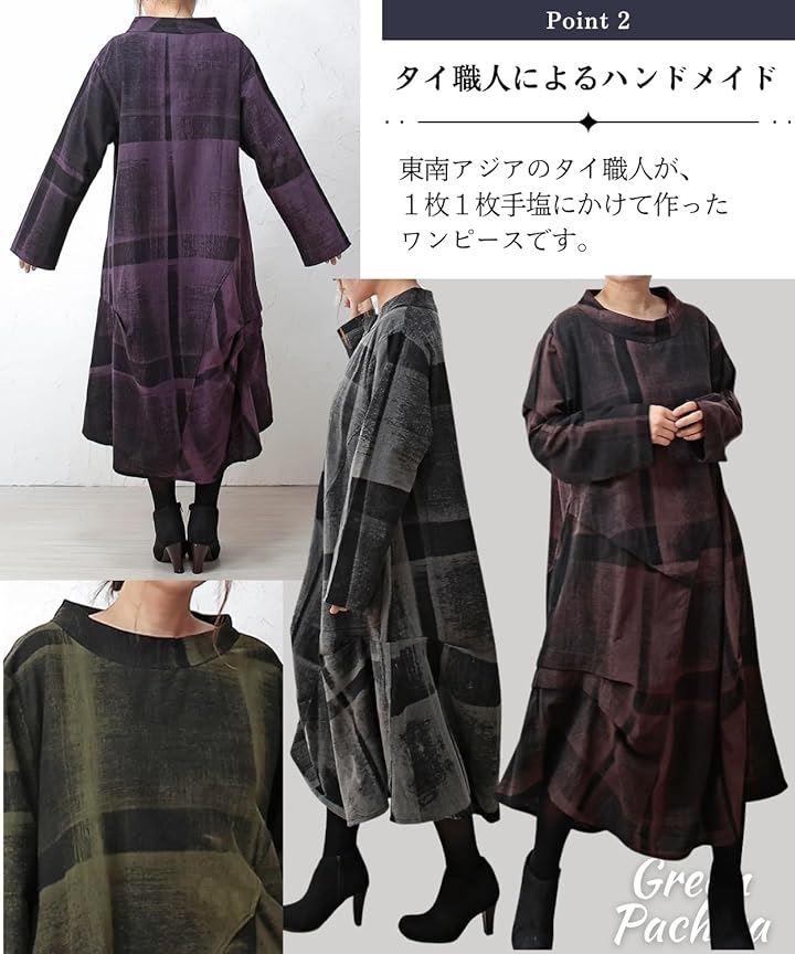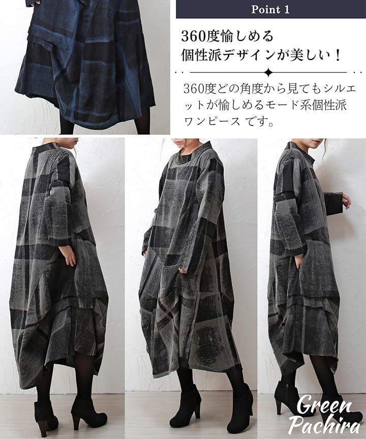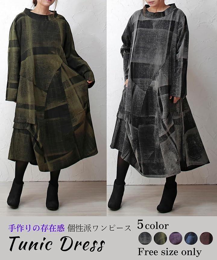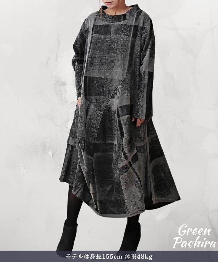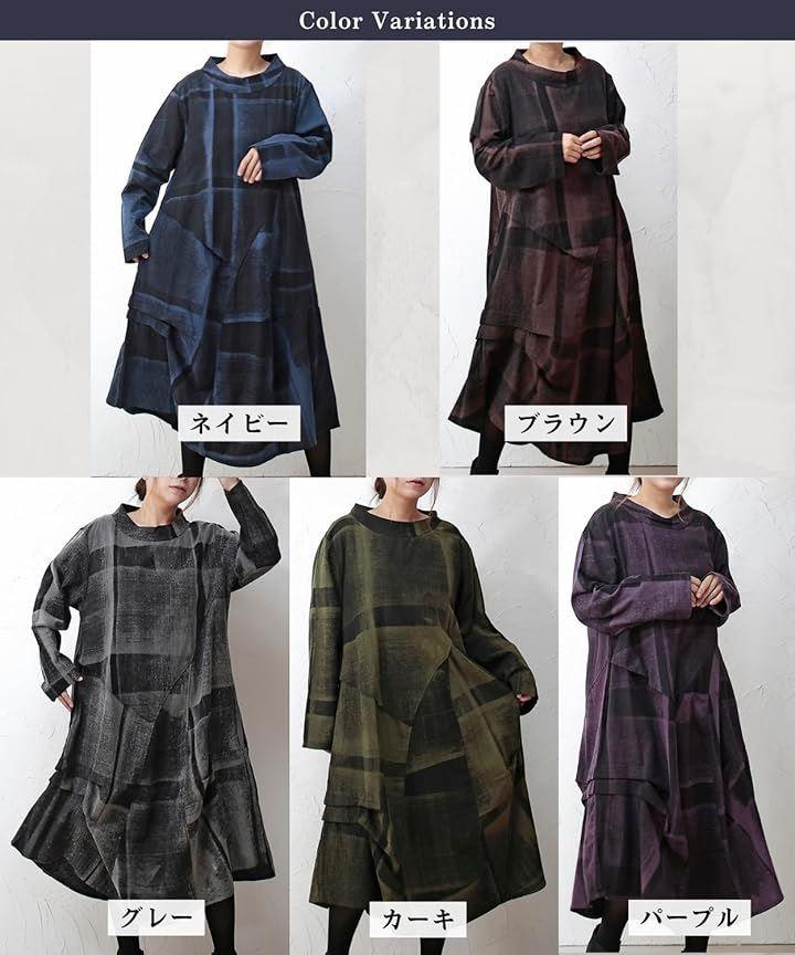 「個性が光るおしゃれワンピース」◉秋 冬のトレンドを取り入れたロングスタイルの長袖 ワンピースは、和風の和柄デザインとアジアン・エスニックテイストを融合させた個性的な雰囲気に仕上がりました。