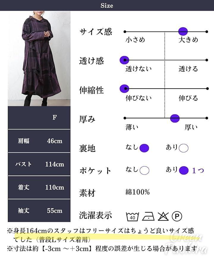 ◉春の肌寒い季節や秋は一年を通して1枚で着用するには適したコットンワンピースです。