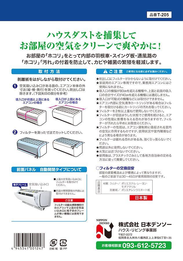 DENSO Japan Co., Ltd. Air conditioner filter for air conditioners, quick-attach dust catcher, for dust prevention, approx. 40 x 80 cm, 2 sheets, made in Japan, T-205
