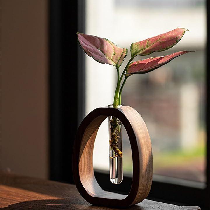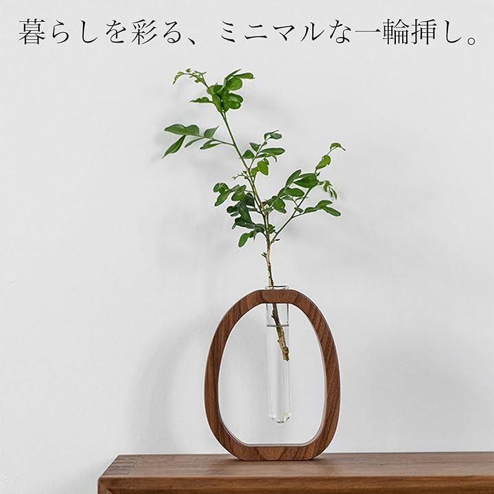 「商品説明」木の温もりとガラスの透明感を融合させた、ミニマルデザインの一輪挿しポットです。
