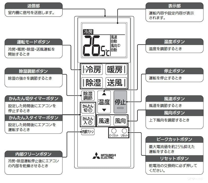 メーカー:MITUBISHI/三菱電機シリーズ名:ルームエアコン 霧ヶ峰用リモコン