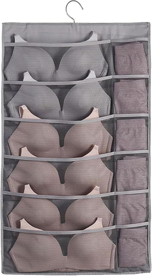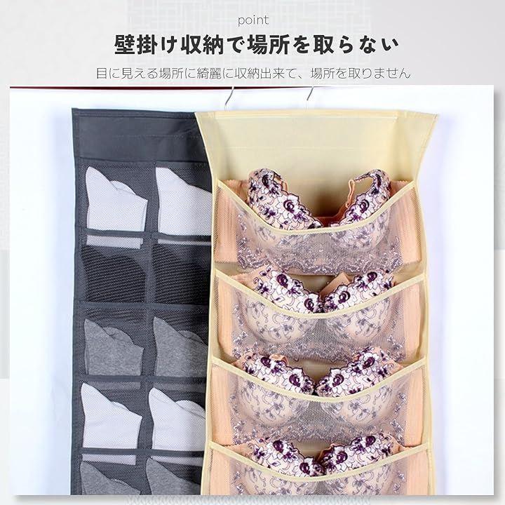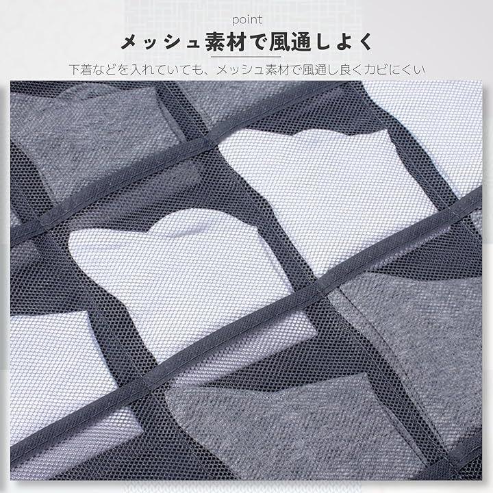 両面収納可能で合計30個のメッシュポケットを備えたこの吊り下げ式下着ウォールポケットは、クローゼットやドアの裏のスペースを効率的に活用し、下着や靴下、アクセサリーなどの小物をすっきりと整理整頓できます。