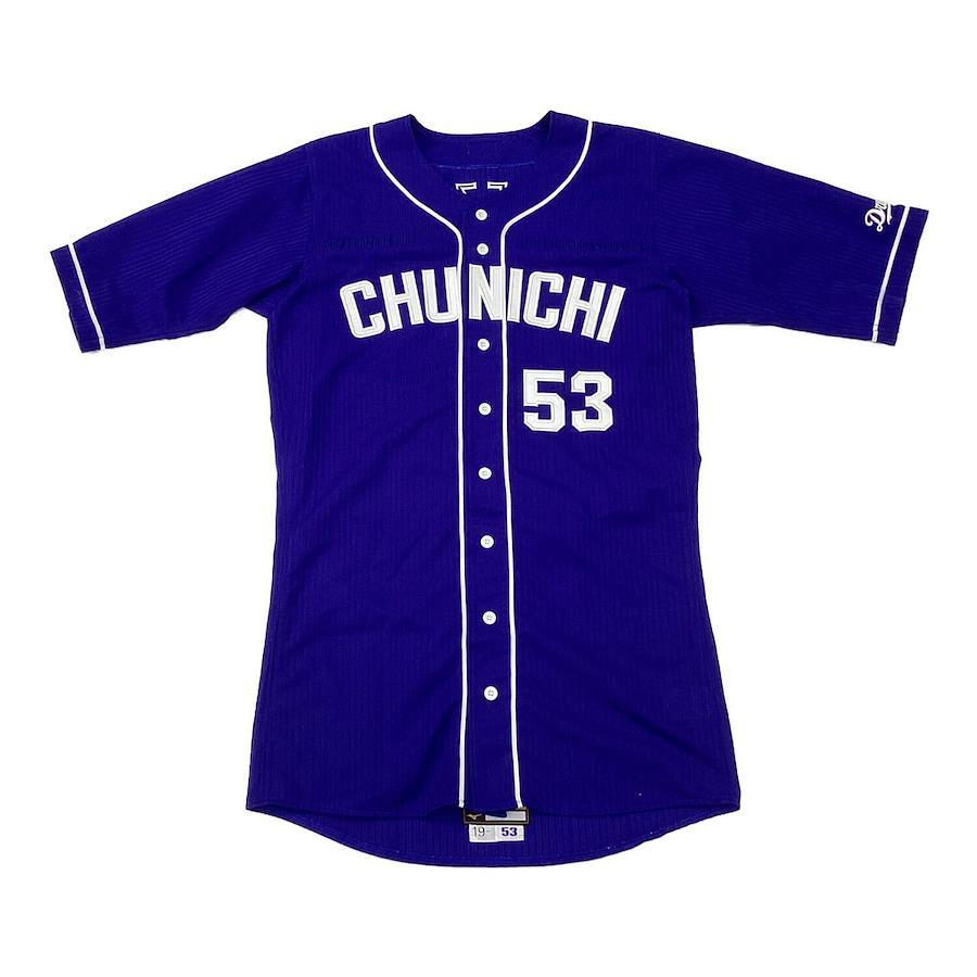 ■商品説明【チーム名】中日ドラゴンズ【ブランド】MIZUNO(ミズノ)【選手名:背番号】亀澤恭平【53】【モデル】プロ仕様モデル【カラー】ブルー【サイズ】本人サイズ【備考】2019シーズンビジター、NPBマーク【状態】程度B(通常程度の使用感で、ボタン裏ヨゴレと少し首元毛玉がございます)