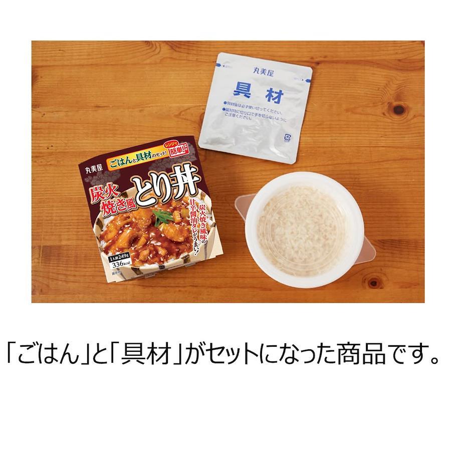 ・「ごはん」と「具材」がセットになった商品です。・材料を準備する必要がなく、電子レンジで温めるだけで簡単にお召し上がりいただけます(お湯で温めての調理も可能です)。・定番の味わいを一人前から手軽にお楽しみいただけます。・常温保存が可能なので、買い物に行けない時や、家庭・職場の常備食としても便利です。・鶏肉・筍・長ねぎ入り。炭火焼き風味の甘辛醤油ダレたっぷりに仕上げたとり丼です。