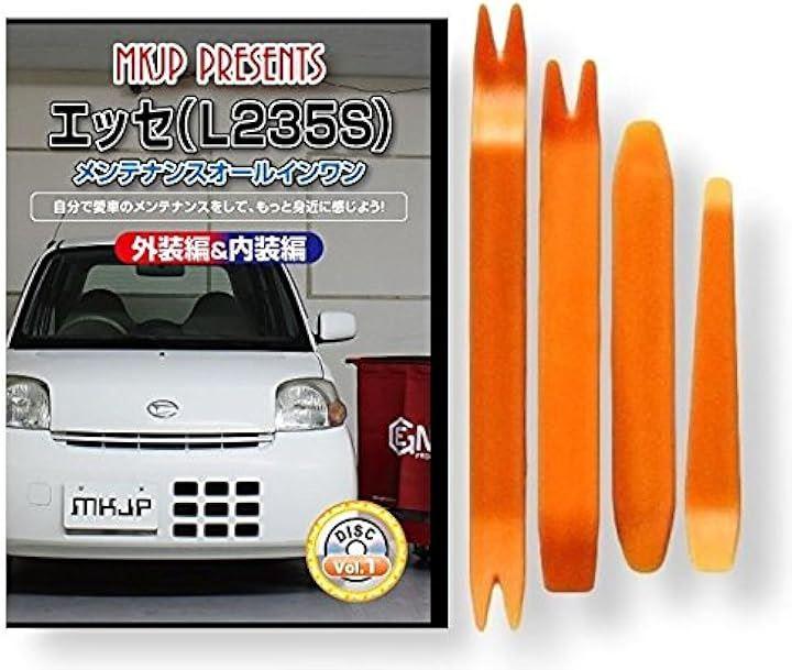 ・ルームランプ交換方法、ライト交換方法・ フロント(リア)バンパー交換方法・内張り交換方法などなど、エッセ (L235S) の 各種パーツの取外し方法や取付け方法、改造やチューニングを解説したDVD。