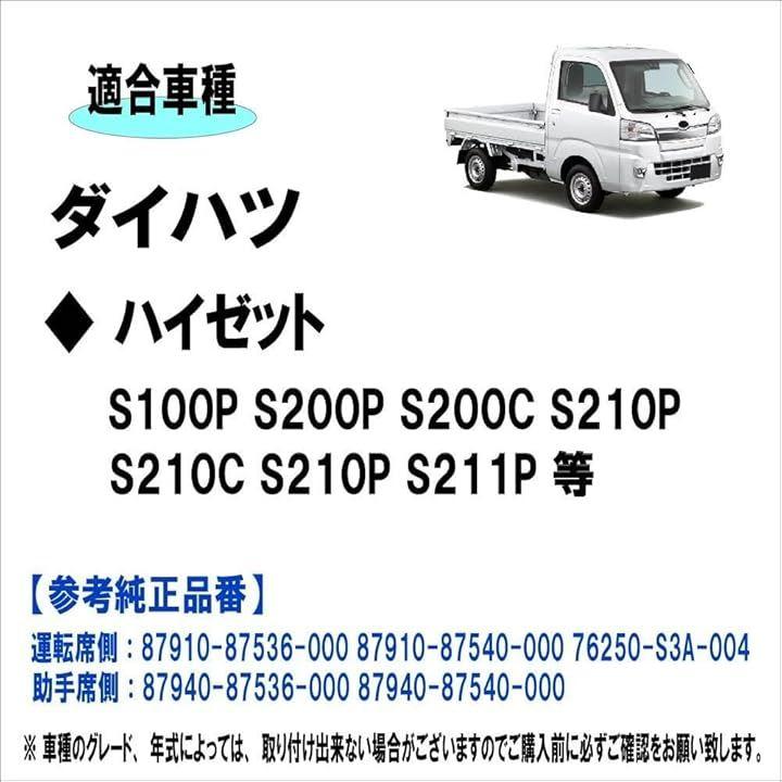 「商品内容」・本体2個 左右セット品 「サイズ」・純正と同等「カラー」・ボディ/ブラック・レンズ/クリア「参考適合車種」* ダイハツ・ハイゼット S100P S200P S200C S210P S210C S210P S211P 等 「参考純正品番」・運転席側:87910-87536-000 87910-87540-000 76250-S3A-004・助手席側:87940-87536-000 87940-87540-000 *車種のグレード、年式によっては、取り付け出来ない場合がございますのでご購入前に必ずご確認をお願い致します。