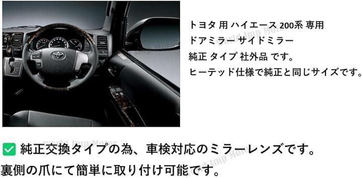トヨタ用ハイエース200系専用ドアミラーサイドミラー純正タイプ社外品です。