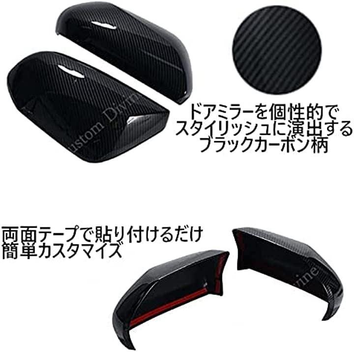 ・材質:ABS製 ブラックカーボン調 セット内容:ドアミラーカバー左右セット ドアミラーを個性的でスタイリッシュに演出する、ブラックカーボン柄のドアミラーカバーです。