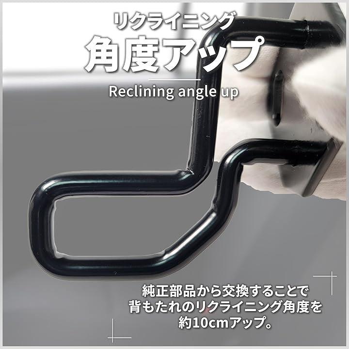 リクライニング角度アップ : 純正部品から交換することで、背もたれのリクライニング角度を約10cmアップ。
