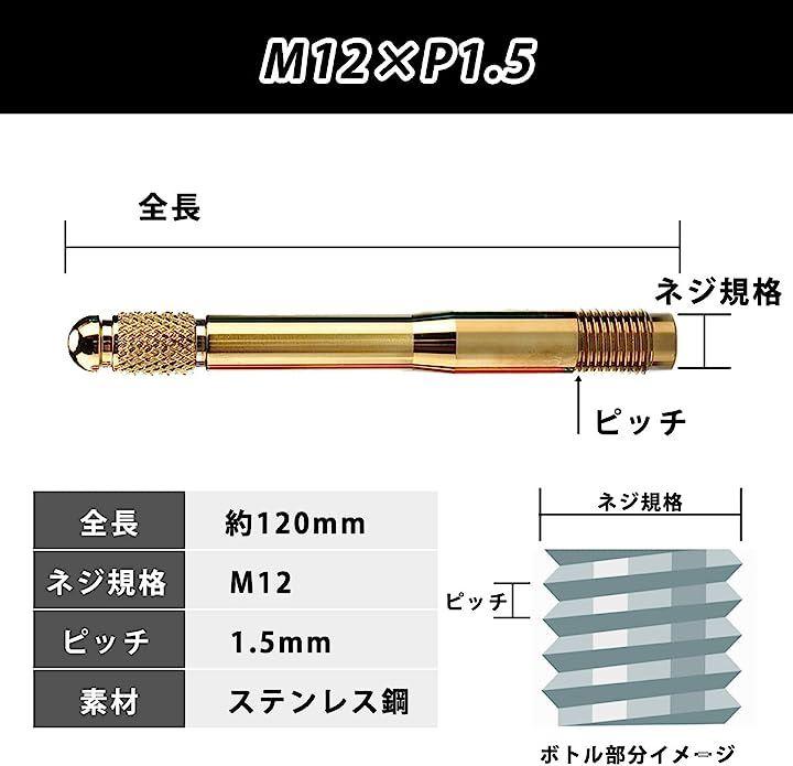 「サイズ」M14:120mmx14mmx14mm、M12:120mmx12mmx12mm、「重量」M14:約190g/個、M12:約180g/個 「バリエーション」ネジ規格M14とM12の2種類からお選びいただけます。
