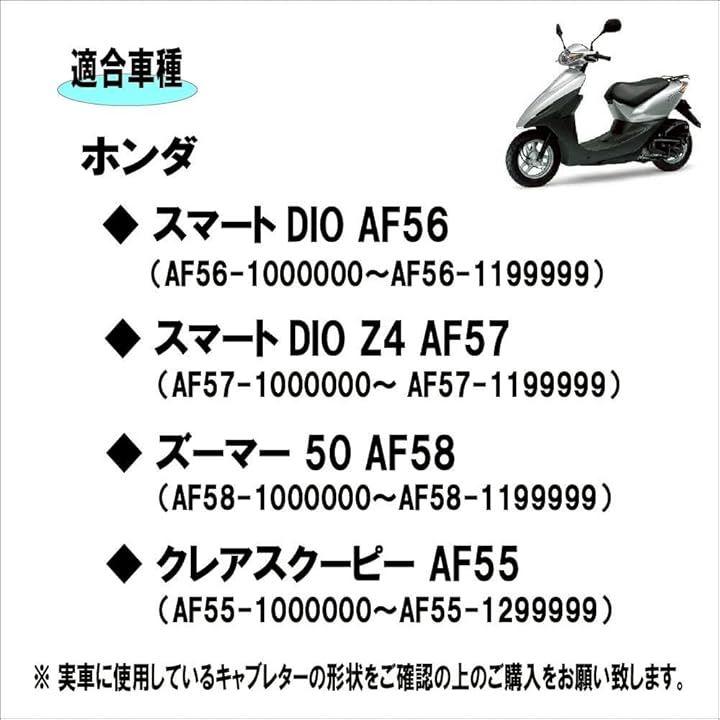 「商品内容」・本体1個(オートチョーク装着済)・ドレンホース (燃料ホース) 約30cm 「サイズ」・純正と同等「対応車種」 * ホンダ ・スマートDIO AF56(AF56-1000000~AF56-1199999) ・スマートDIO Z4 AF57(AF57-1000000~ AF57-1199999)・ズーマー 50 AF58(AF58-1000000~AF58-1199999)・クレアスクーピー AF55(AF55-1000000~AF55-1299999) * 実車に使用しているキャブレターの形状をご確認の上のご購入をお願い致します。