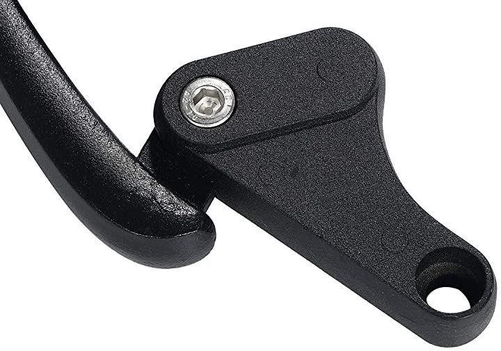 ブレーキやクラッチ操作の邪魔にならない、前へせり出した形状になっています。
