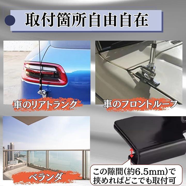 「愛車にモービルアンテナをスマートに装着。工具不要で簡単取付。」 ハッチバック・トランク対応。幅広い車種にフィット 取付用六角レンチ&傷防止プレート付き。初心者でも安心 頑丈&スタイリッシュなブラック仕上げ