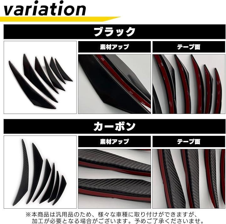 フロントバンパーだけでなく、ボンネット、スポイラー、フロントフェンダー、ドア、リアフェンダー、リアバンパーなど、さまざまな部位に取り付けることができ、車両のカスタマイズの幅が広がります。
