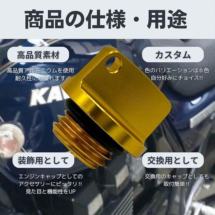 「個性的なオイルフィラーキャップでカスタムを楽しむ」このオイルフィラーキャップは、あなたのバイクを個性的にカスタムするのに最適です お好みや車体のカラーに合わせて、さまざまな色からお選びいただけます