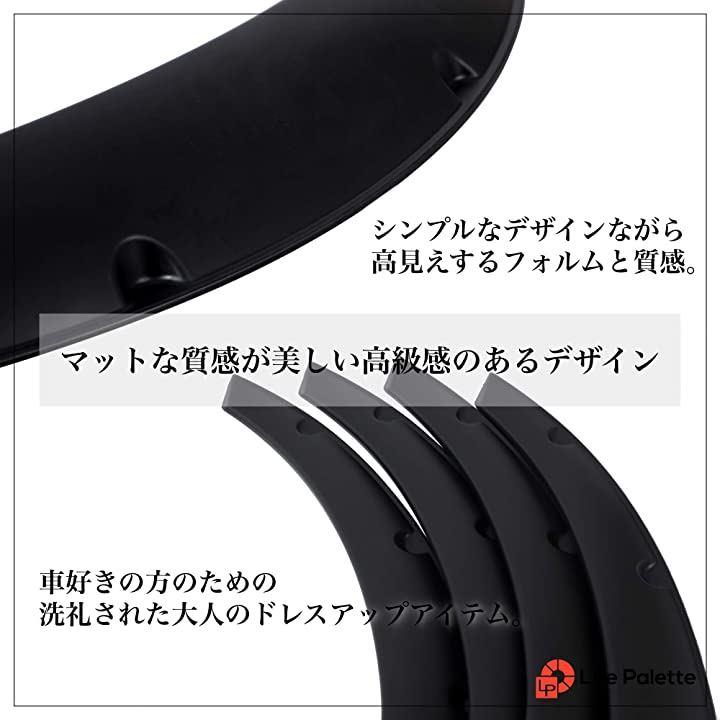 強度はもちろん、しなる素材で車のフェンダーアーチに合わせて装着しやすく、フィット感も* マットな質感で安価ながら高級感のある仕上がりに。
