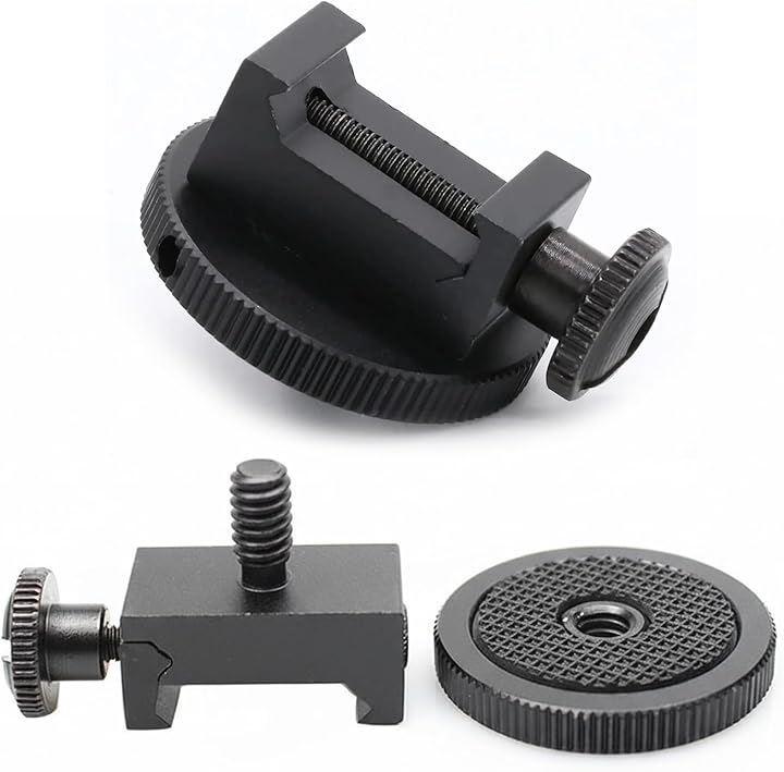 お手持ちのカメラ(1/4インチネジの小型アクションカメラなど)や、スマホホルダー付きのセットの方でしたら、スマートフォンを、エアガンや各種装備の20mmのレールに取り付け可能。