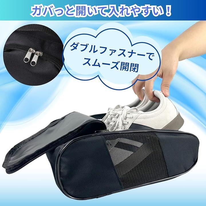 「優れた通気性と蒸れ対策」 シューズケース全体に通気性の良いメッシュ素材を採用し、靴内部の湿気やニオイを効果的に排出。