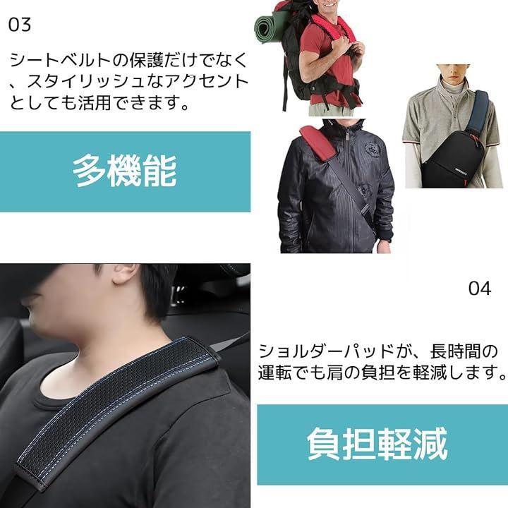 多機能: シートベルトの保護だけでなく、スタイリッシュなアクセントとしても活用できます。