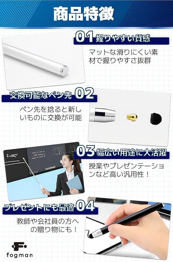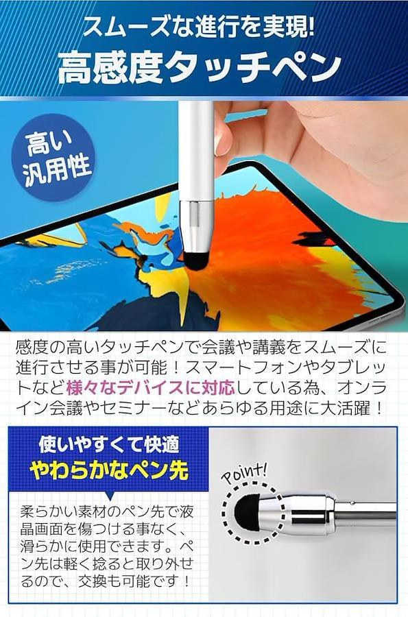 「高感度タッチペン」感度の高いタッチペンで会議や講義をスムーズに進行させる事が可能。スマートフォンやタブレットなど様々なデバイスに対応している為、オンライン会議やセミナーなどあらゆる用途に大活躍。