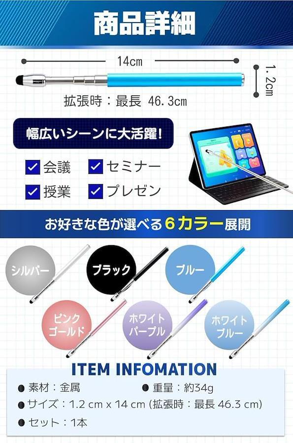 「便利な伸縮タイプ」自由に長さを調整できる伸縮型の仕様なので、指示棒としても使用することができます。