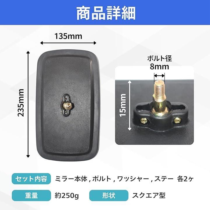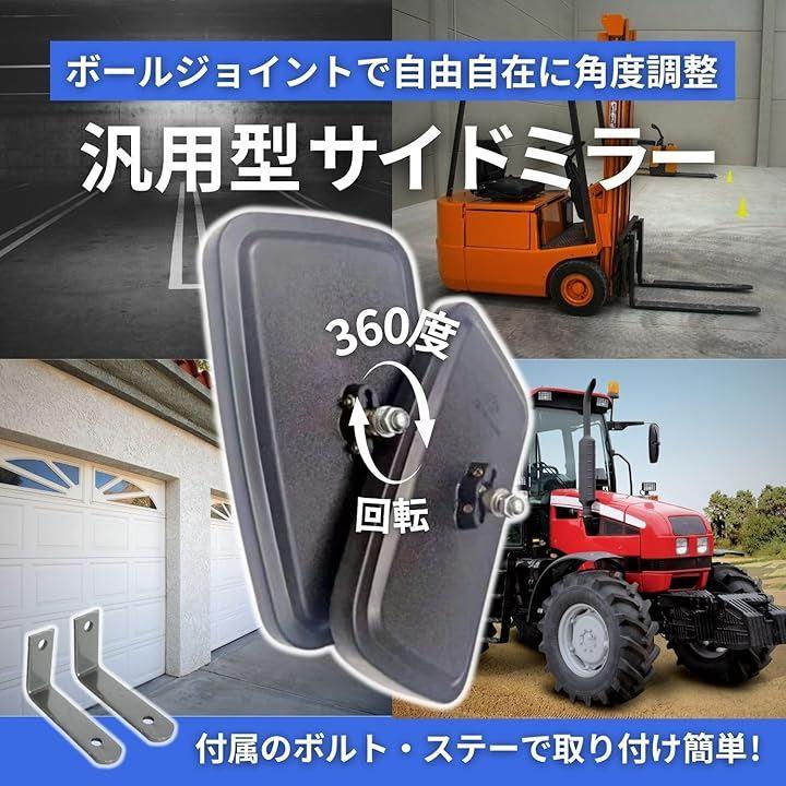 トラクター、フォークリフト、軽トラ、トラックに適合し、純正ミラーの代替品やドレスアップアイテムとしても最適です。