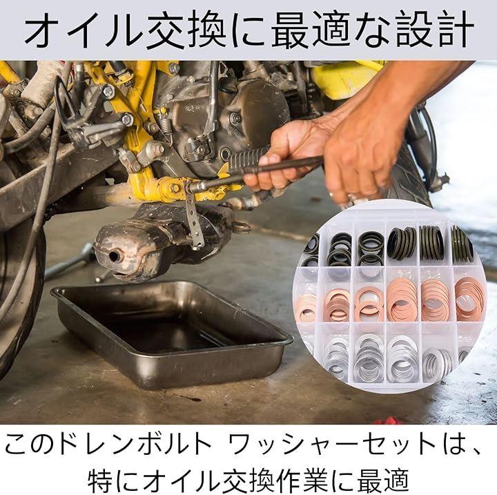 オイル交換に最適な設計 このドレンボルト ワッシャーセットは、特にオイル交換作業に最適。