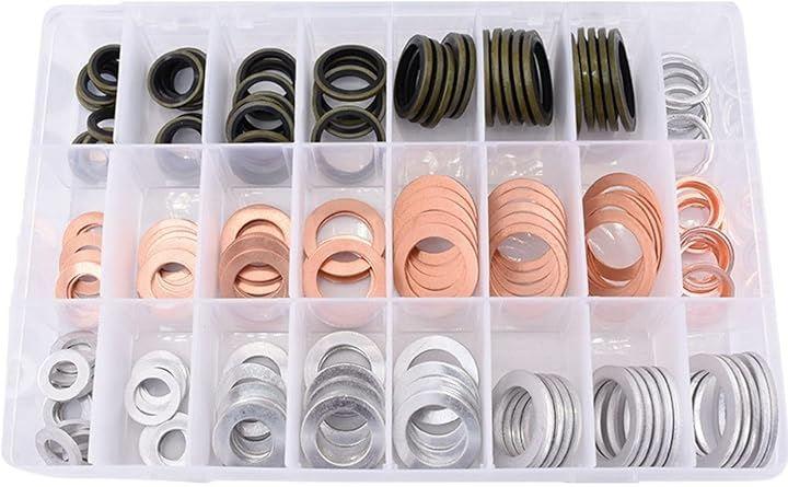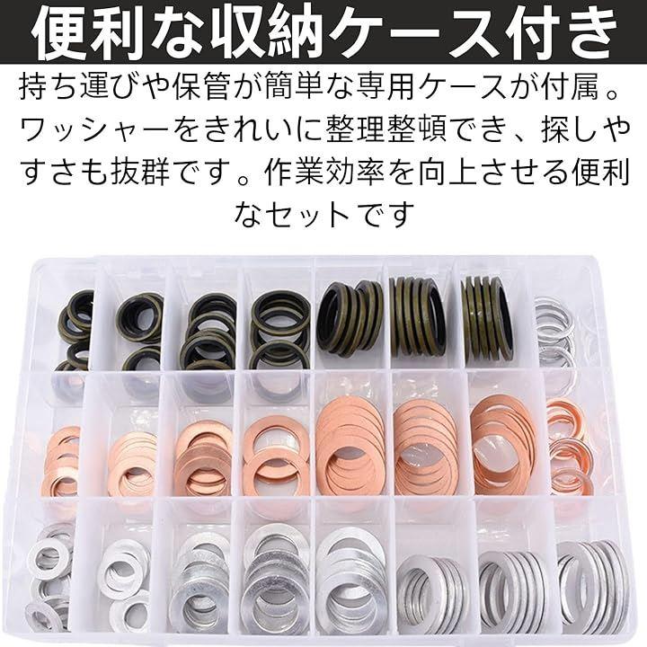 多素材のワッシャーで幅広い対応力 アルミ、銅、スチール、ラバー製ワッシャーが揃ったセット。