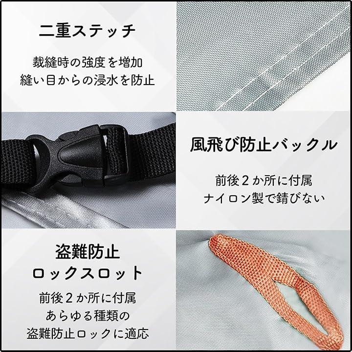 ワンタッチバックルで簡単に装着でき、カバー下部には高弾性のゴムバンドが一周に施され、車体をしっかりホールドします。
