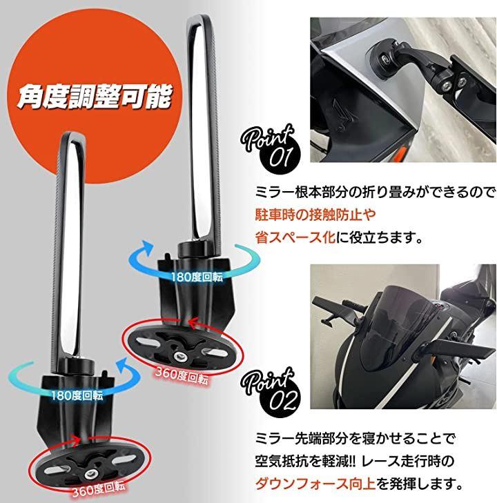 ・「商品概要」空力性能を追求したスタイリッシュなデザインの汎用タイプのウイング型バイクミラー。