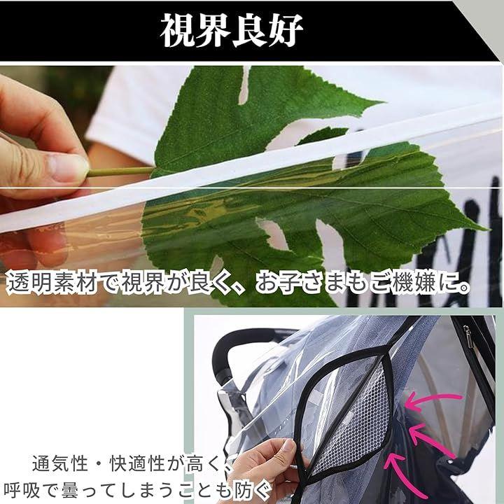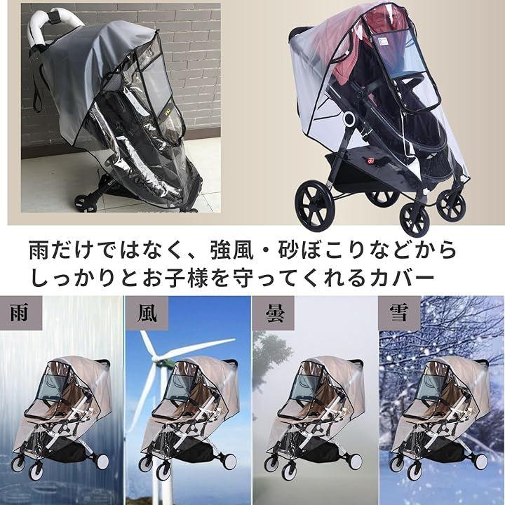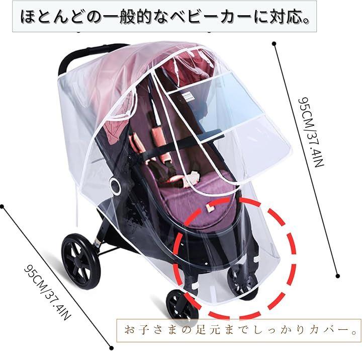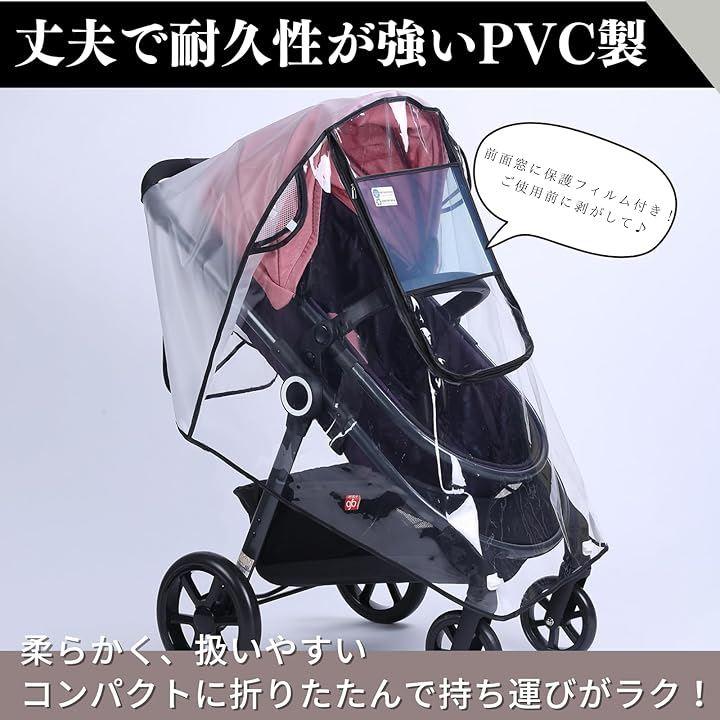 「ベビーカー用レインカバー」透明カバーで視界も良好。しっかりとした防水素材で作られており、突然の雨や強風、砂埃などからお子様をしっかりと保護します。