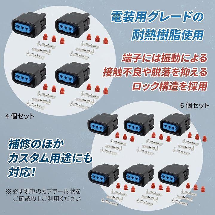 「ホンダ車に適応するイグニッションコイル用カプラー4個セット」ホンダ車に多く採用されているタイプのイグニッションコイルに対応するカプラーの互換品6個セットです。