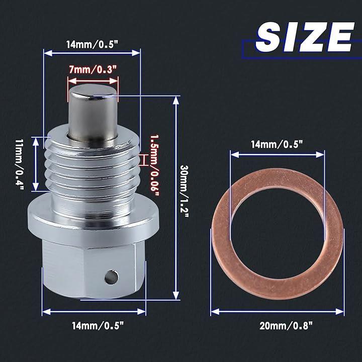 パッケージに含まれるもの: M14 x 1.5磁気オイルドレンプラグx 1、赤銅ガスケットx 3。