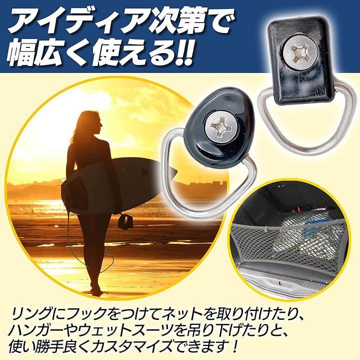 ・リングにフックをつけて伸縮コードやネットを取り付けたり、ハンガー、ウェットスーツを吊り下げたりと、 使い勝手良くカスタマイズできます。