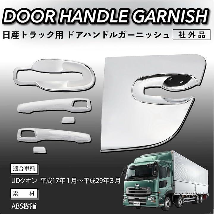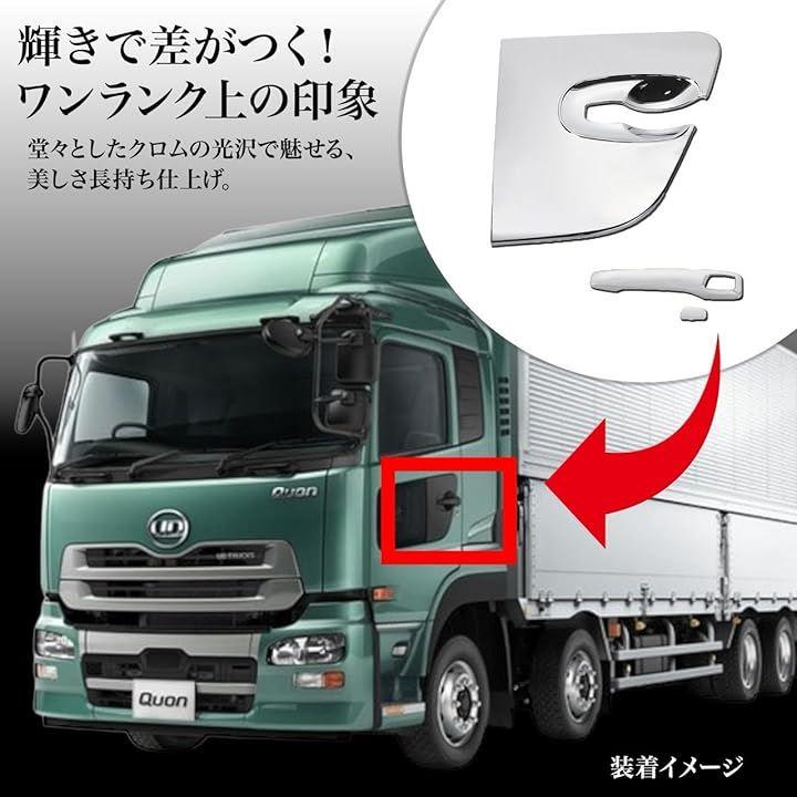 「商品説明」 トラックの外観を一瞬で引き締める、日産 UDクオン用メッキドアハンドルカバーです。