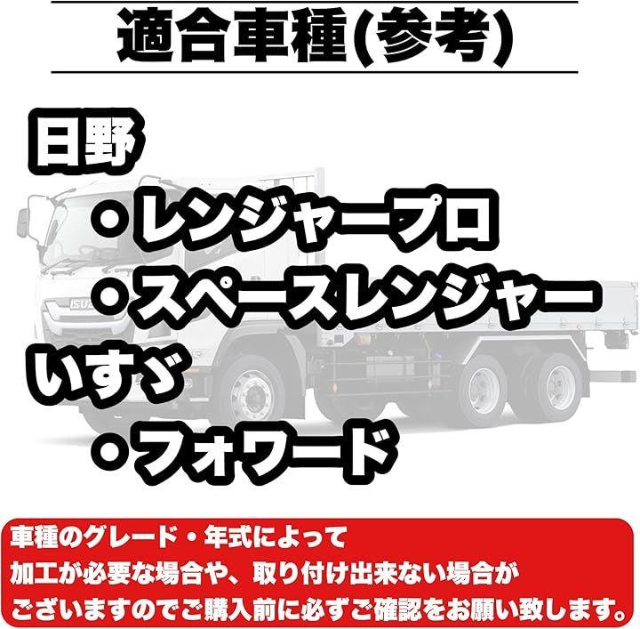 「適合車種(参考)」 ・日野 スペースレンジャー、レンジャープロ・いすゞ フォワード 等 *専用設計ですが車種のグレード・年式によっては、加工が必要な場合や、取り付け出来ない場合がございますのでご購入前に必ずご確認をお願い致します。