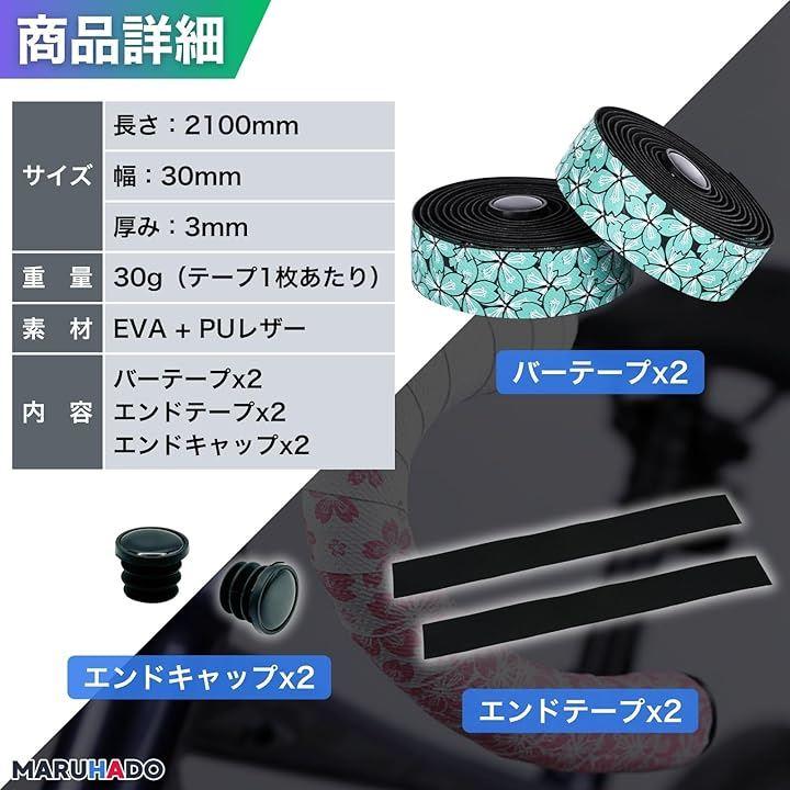 「商品仕様」素材:PUレザー+EVA サイズ:厚み3mm、長さ2100mm、幅30mm 付属品:バーテープx2、エンドキャップx2、エンドテープx2 重量:30g(バーテープ1枚あたり)