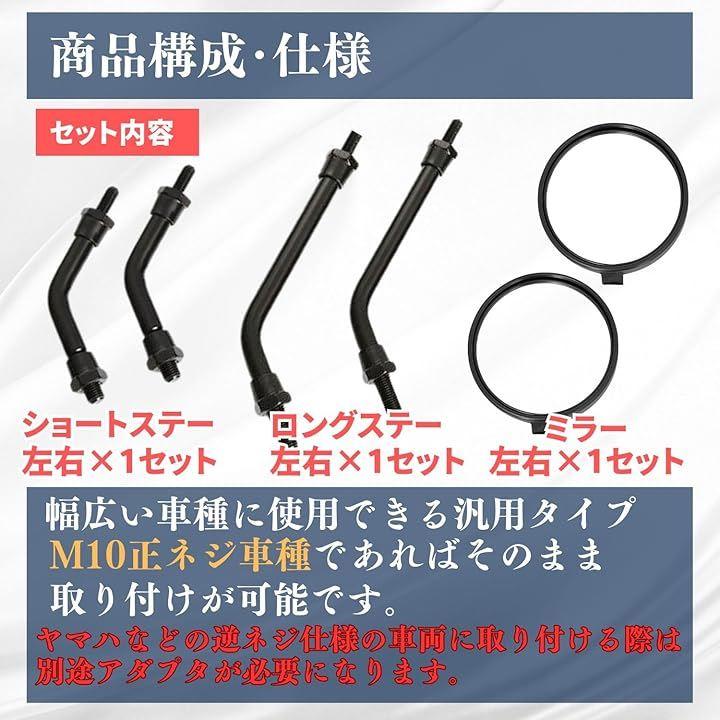 正ネジ M10 の汎用 Z2ショートミラー ショートステー 左右セット 10mm正ネジ車であればそのまま取り付け可能。