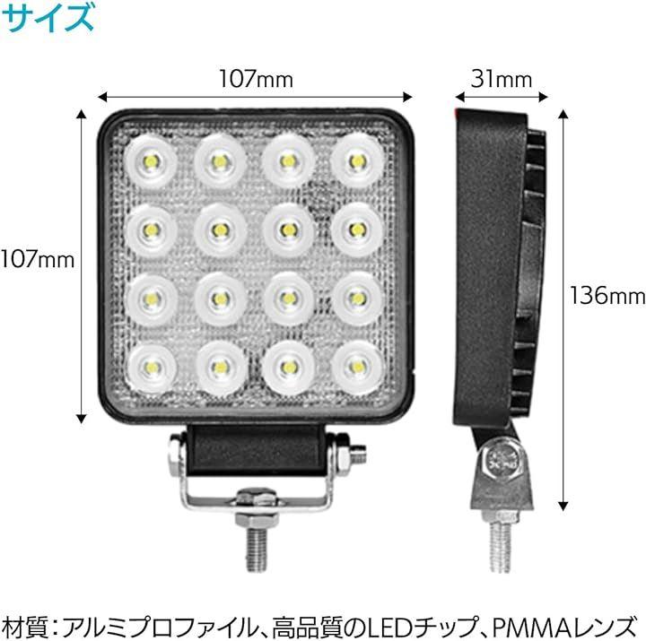 16個の3W形ハイパワーLEDチップを使用し、明るさと耐久性を兼ね備えたLED作業灯です。