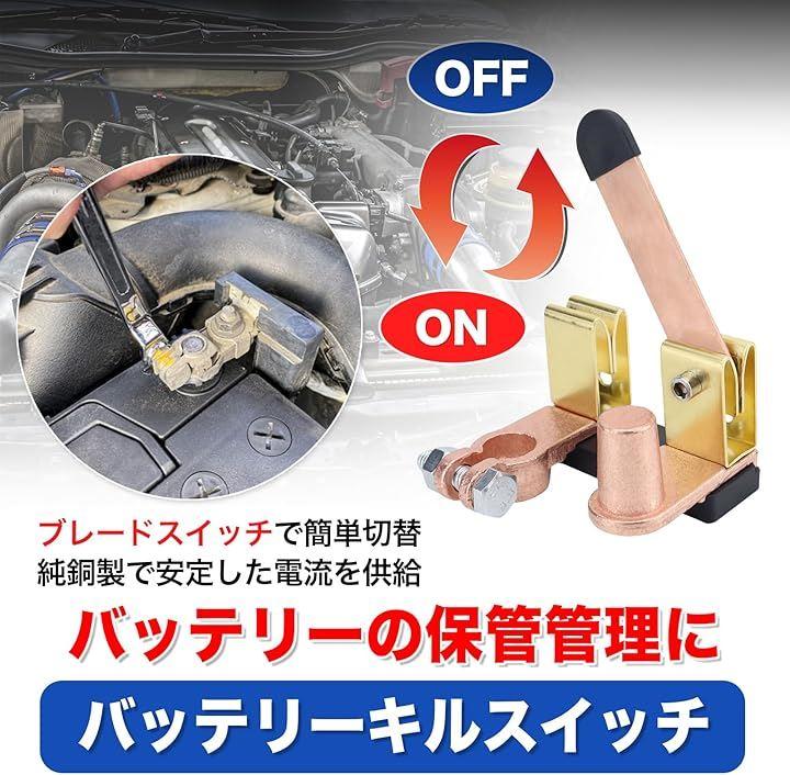 電気系統をシャットダウンすることでバッテリー上がりを防止し、バッテリーの寿命を延ばしたり、感電や火災のリスクを回避できるバッテリーキルスイッチです。