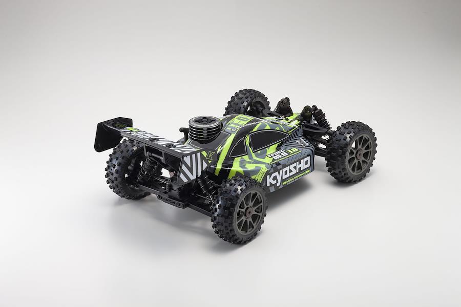1/8スケールの迫力を手軽に楽しめるビギナー向けレーシングバギーの決定版。 実車を1/8サイズに縮小したR/Cカーは、モデルカーの中では比較的大柄な車体を持ち、重量感とスピードを兼ね備えた走行を楽しむことができるカテゴリーです。 中でもオフロードを豪快に駆ける1/8 GPバギーは世界でも屈指の人気カテゴリーとして知られています。 しかし、エンジンを搭載するGPモデルは、EP (電動)モデルに比べるとビギナーにとってややハードルの高い印象もあります。 そんな印象を覆し、初心者であっても大型バギーの操縦を堪能できるのがこのモデルです。 「インファーノ」の名称は、競技用1/8 GPバギーの中でも特別な響きがあります。 1991年にシリーズ第1作がデビューすると、翌年には早くも世界タイトルの獲得に成功し、以降合計8回のタイトルを奪取。 現在もシリーズ最新モデルのMP10 TKI3が世界各国のレースで活躍しています。 そんなインファーノシリーズをベースに、誰でも始動や調整が容易なエンジンを搭載するとともに、車体の組み立てとR/Cメカの取り付けと調整、ボディも完成済みのフルセットで販売するのがこのインファーノ NEO3.0です。 すでにインファーノ NEO3.0はリリース済みで高い人気を得ていますが、今回新たなボディカラーバリエーションが登場し、ステアリング&スロットルサーボもトルク性能を高めたNEWタイプになりました。 新サーボはステアリング応答性の正確さをアップすると同時に、ハードなコーナリングでもハンドルが乱れることはありません。 同サーボはスロットル側にも搭載され、エンジンのレスポンスを高めてブレーキの制動力アップにも貢献します。 キットにはエンジンのブレークイン (慣らし)をニードル調整なしに行えるリングも付属するため、これまでGPモデルの経験がないという人であっても、手軽にGPバギーを走らせることができます。 サーキットはもちろん、アウトドアフィールドを自由に走り回れるインファーノ NEO3.0のポテンシャルを、是非とも直に体感してください。 【テクニカルデータ】 全長:469mm。 全幅:307mm。 全高:189mm。 ホイールベース:325.5mm。 トレッド (F/R):258mm/261mm。 タイヤ (F/R) :φ116×44mm/φ116×44mm。 ギヤレシオ: 11.56:1。 全備重量:約3400g。 エンジン:KE21SP。 プロポ:2.4GHz シンクロKT-231P+。 【走行までに必要なもの (本製品には含まれておりません)】 グロー燃料。 送・受信機用単三アルカリ乾電池:8本。 始動用具 (燃料ポンプ、プラグヒーター)。 ※本製品の駆動には電池が必要ですが、本製品には含まれません。 ※本製品は燃料を使用しますが、本製品に燃料は含まれません。 ※本製品には燃料ポンプ、プラグヒーター等が必要ですが本製品には含まれません。走行までに別途ご購入下さい。 ※本製品に塗料、接着剤、オイル、グリス、等は含まれません。