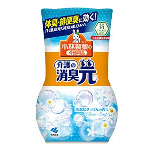 ■商品概要メーカー:小林製薬商品名:介護の消臭元 清潔なせっけんの香り(400mL)区分:日用雑貨内容量:400mL商品概要:体臭・排便臭に効く!介護臭用消臭成分配合JANコード:4987072043042商品コード:075650611