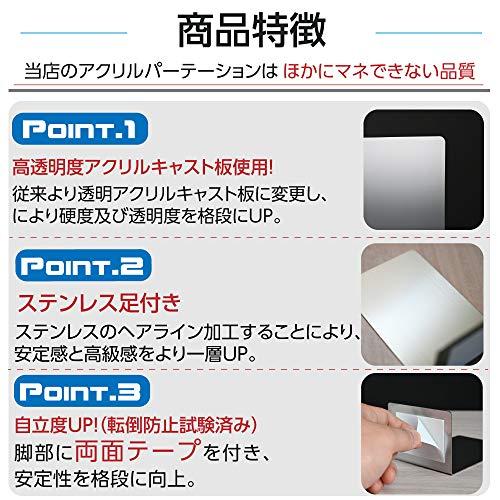 【※ご注文時の注意事項※】江戸川区より当日出荷☆ ※ほかの出品様が販売・発送する商品は、株式会社頂点デザインの製品とは異なりますので、十分ご注意ください。【商品仕様】本体サイズ:横幅:900mm 高さ650mm | 窓サイズ:横幅:250mm 高さ200mm | 材質:透明アクリルキャスト板【ウイルス対策用パーテーション】病院、オフィス、会議、飲食店、受付、窓口、カウンターなど、対面する場面で衛生的な環境におすすめです。【仕様改良安定感UP】 足スタンド部分にステンレスのヘアライン加工することにより、滑り止め防止効果が生まれ、安定感と高級感をより一層UP。【お店、窓口で最も使いやすい 高さ65cmサイズ】 レストラン、カフェ飲食業、サービス業、小売り販売業といった各事業者さまからの引き合いが最も多いのが、高さ65cmサイズの仕切り板です。余裕のある高さで飛沫を防ぎ、横幅は、店舗、オフィス空間の邪魔にならない、お客さまとのコミュニケーションの障害にならない最適サイズです。