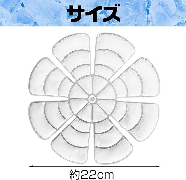 「ヘッドクール アイスパット 仕様」 男女兼用フリーサイズ:長さ22x幅22x高さ0.5cm 重さ:約70グラム 素材:TPU 冷蔵庫で約30分、冷凍庫で約20分で凝結。