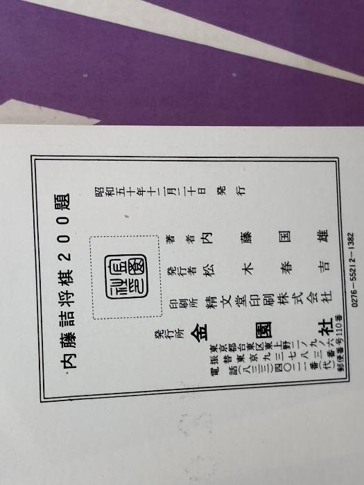 商品名:内藤詰将棋200題 内藤国雄 金園社