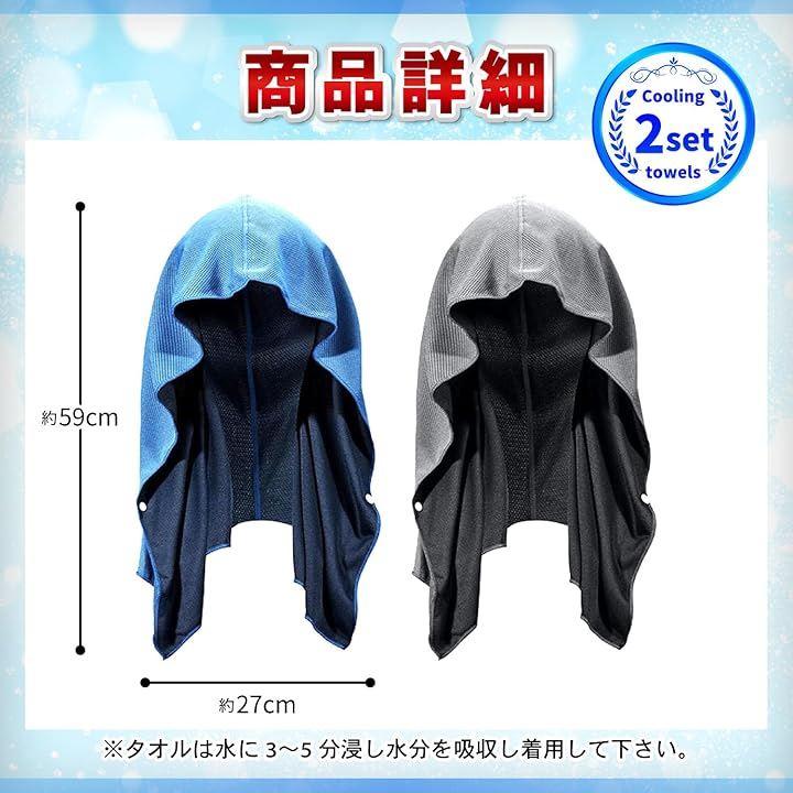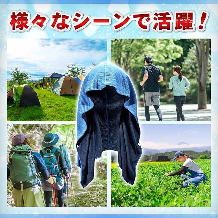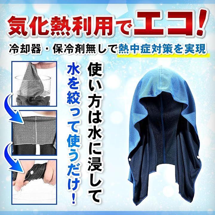 ボタン付きで安定感もあり、頭から首、顔まで冷やし日差しのシャットアウトする、uvカットタオルです。
