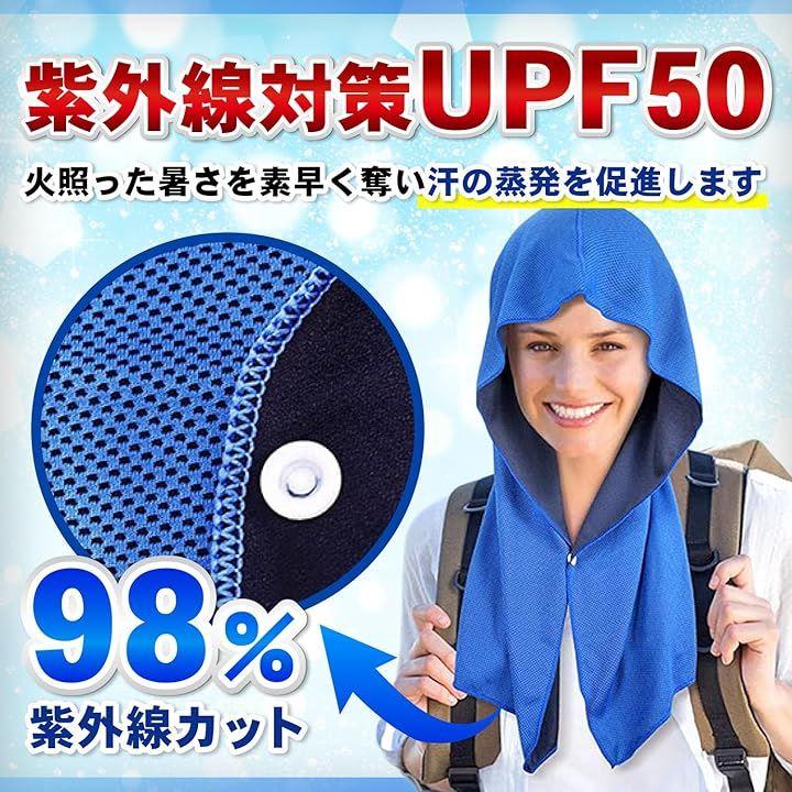 頭を冷やすだけではなく、紫外線対策としても、UVカット(UPF50)で肌を守り、日焼けをブロックする、蒸れにいクールタオルです。