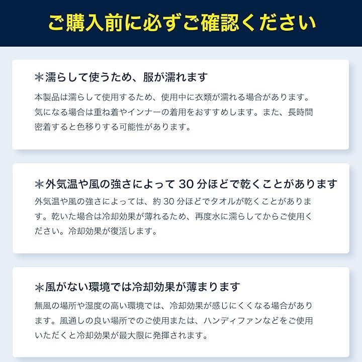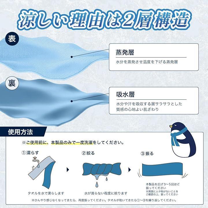 特殊冷却素材を採用し、水に濡らして軽く振るだけで体感温度を最大-11℃まで下げます。