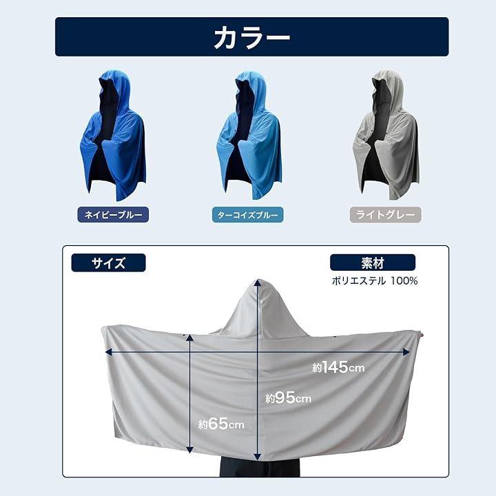 アイスポンチョとして全身を覆うゆったり設計で、頭から腕、背中までしっかり保護。