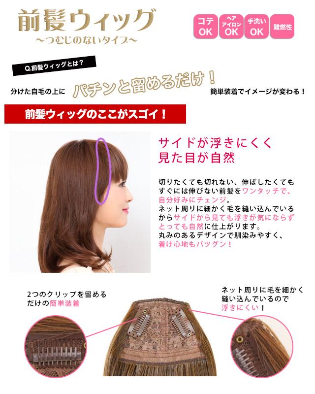 プリシラ 前髪ウィッグ/つむじなしタイプ(ポイントウィッグ) 分けた自毛の上にパチンと留めるだけの簡単装着前髪ウィッグ